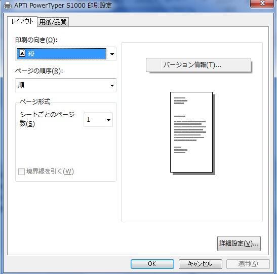 2.[印刷設定]のダイアログボックス上のボタン以外のスペースで右クリックすると、「バージョン情報(T)...」が表示されます。