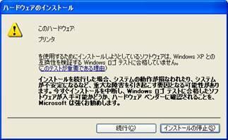 ハードウェアのインストール]ダイアログが表示され、Windows ロゴテストに合格していない旨のメッセージが表示されますが、問題ありませんので[続行]ボタンをクリックします。